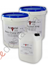 Kompozycja składa się z płynnej żywice na bazie wodnej Acrystal PRIMA i krystalicznego pyłu utwardzającego Basic Crystal.